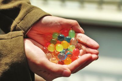 吸水性树脂,一般是用淀粉混合丙烯腈或丙烯酸酯制成的,而丙烯腈和丙烯酸酯都有一定的毒性,像这种颜色各异的“水宝宝”,可能是由于商家添加工业色素所致。所以,家长要留心,切忌让年龄小的儿童接触,以免误食。