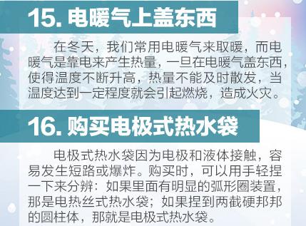 ③电暖气:不要在上面烤东西,不要让其出风口紧贴身体部分加热。