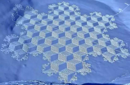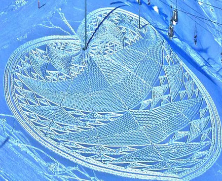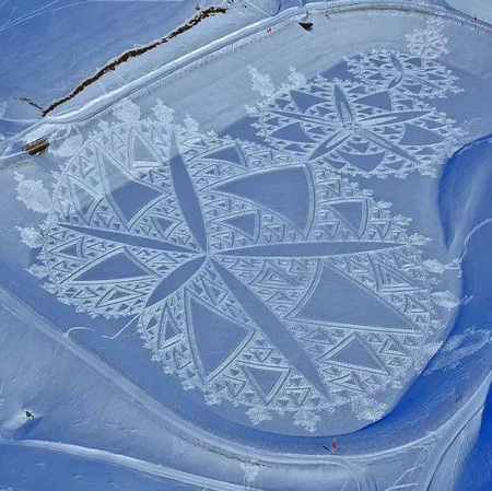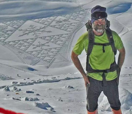 这就是一位Simon Beck的大叔,用脚在雪地上踩出来的。