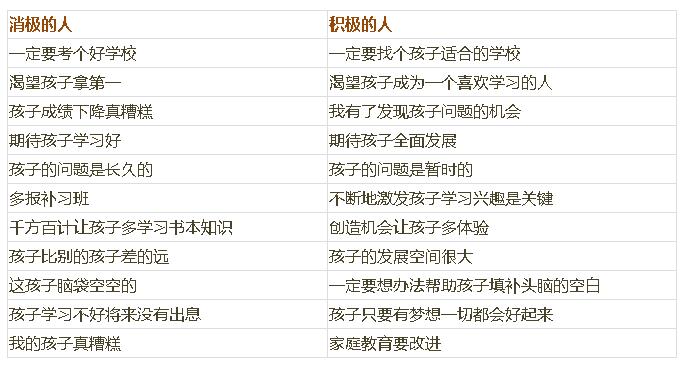 思维决定命运,思维决定心态,思维决定教育方式,思维影响孩子的前途。一个人在原生家庭中继承和熏陶的最重要的是思维方式。积极思维的人容易培育出积极思维的孩子,消极思维的人,容易造就消极思维的孩子。下面我们就来看看消极的人和积极的人他们的思维方式有何不同?