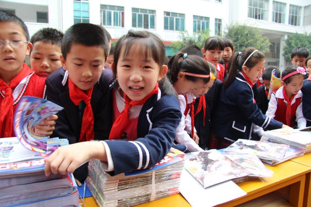 继启动仪式之后,“红领巾阅读推广计划”工作组一行8人将第一批赠书就地分配到向阳路小学的49个班级。全州剩余的21所受捐赠的学校将在5月15日前配送完毕。